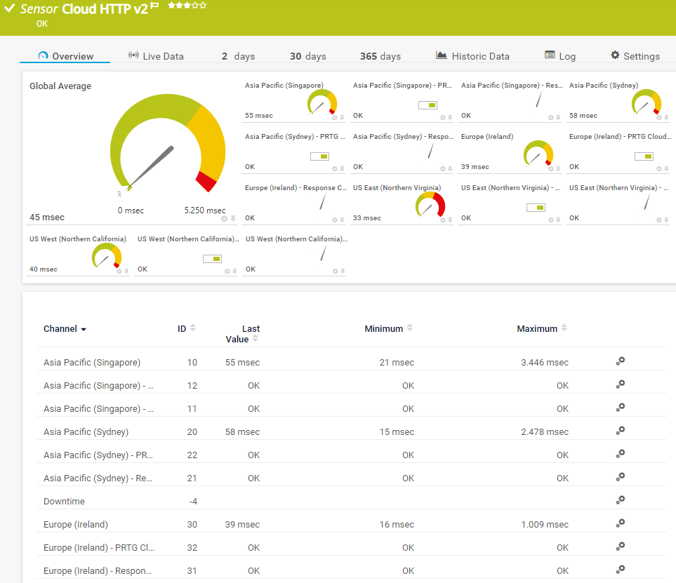 Asia Pacific (Singapore) - PRTG Cloud Response