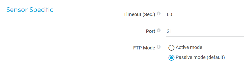 Enter the number of the FTP port that the sensor tries to connect to. Enter an integer. The default port number is 21.